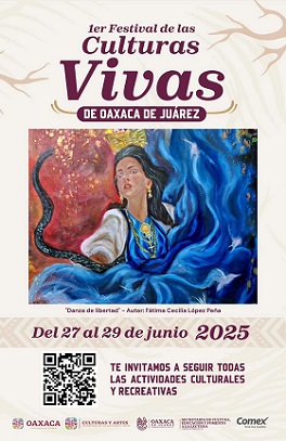 Oaxaca, Oaxaca, Lunes 23 de Junio, 2025 (Fuente: Comunicado).- El Municipio de Oaxaca de Juárez (capital de Oaxaca), a través de la Secretaría de Cultura, Educación y Fomento a la cultura anuncia la realización del Primer Festival de las Culturas Vivas, que se llevará a cabo del 27 al 30 de junio con una amplia oferta de actividades artísticas, culturales y comunitarias en distintas sedes de la capital.