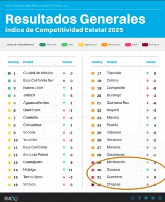 Oaxaca, de los menos competitivos