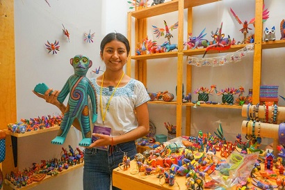 Subrayó que la destreza y la visión única de esta comunidad para tallar la madera, impregnándola con el simbolismo de sus raíces y tradiciones, han permitido que las piezas artesanales de Arrazola trasciendan fronteras y coloquen el nombre de Oaxaca en mercados y escenarios internacionales.