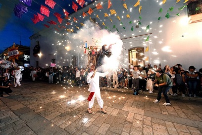 Las ruedas de pirotecnia anunciaron el paso del contingente que cimbró el Corazón Cultural de México con sus luces multicolores. El sonido de las chirimías invitó a disfrutar de esta gran fiesta.