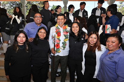 Acompañado de la Presidenta Honoraria del Sistema DIF Oaxaca, Irma Bolaños Quijano; Jara Cruz también anunció la rehabilitación de la avenida Universidad que conduce a la Universidad de la Sierra de Juárez, a través de Caminos Bienestar.