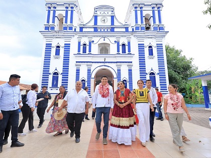 Santo Domingo Tehuantepec, Oaxaca, Viernes 22 de Agosto, 2025 (Fuente: Comunicado).- El gobernador Salomón Jara Cruz inauguró en esta localidad la restauración del templo de la Asunción de María y la construcción del techado en el área de impartición de educación física de la telesecundaria, obras que representaron una inversión superior a los 6 millones 700 mil pesos.