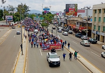Con una marcha representativa que salió de la carretera federal 190, la que va de la capital a la región Istmo de Oaxaca, precisamente en el crucero hacia Tuxtepec, partieron hacia el zócalo de la capital de Oaxaca, realizando un mitin, siendo ahí en donde la gremial externó su rechazo al informe, que coincidió con el inicio del ciclo escolar 2025-2026.