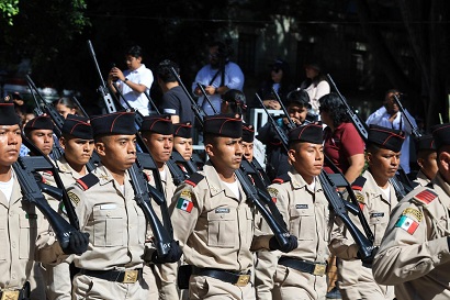 Al compás de las marchas interpretadas por la Banda de Música de la Octava Región Militar, los primeros contingentes en hacer su aparición fueron las Fuerzas Armadas que siempre han estado presentes para socorrer a las y los oaxaqueños en cualquier contingencia.