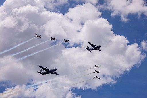 Como parte del Desfile Cívico Militar, siete paracaidistas: cinco del Ejército mexicano y dos de la Secretaría de Marina, realizaron un salto libre acrobático. Y la teniente Jenny Concepción Bolaños Sánchez, perteneciente a la Guardia Nacional, fue la encargada de declamar la poesía “A la Patria”, de la autoría del poeta Manuel Acuña.
