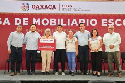 En un acto histórico, el Gobierno de Oaxaca ha dotado de mobiliario nuevo a 11 mil 630 escuelas ubicadas en las ocho regiones de la entidad, de las cuales, en más de 6 mil 200, el Gobernador ha autorizado directamente el material, en sus visitas a las comunidades.