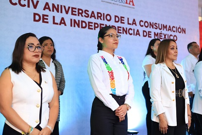 Oaxaca, Oaxaca, Domingo 28 de Septiembre, 2025 (Fuente: Comunicado).- Al encabezar el arrío del Lábaro Patrio en la Alameda de León, la coordinadora de Comunicación Social del gobierno de Oaxaca, Elizabeth Álvarez Acosta, destacó el papel fundamental de las mujeres en la administración pública de Oaxaca y México.