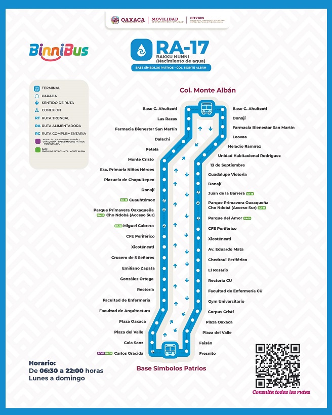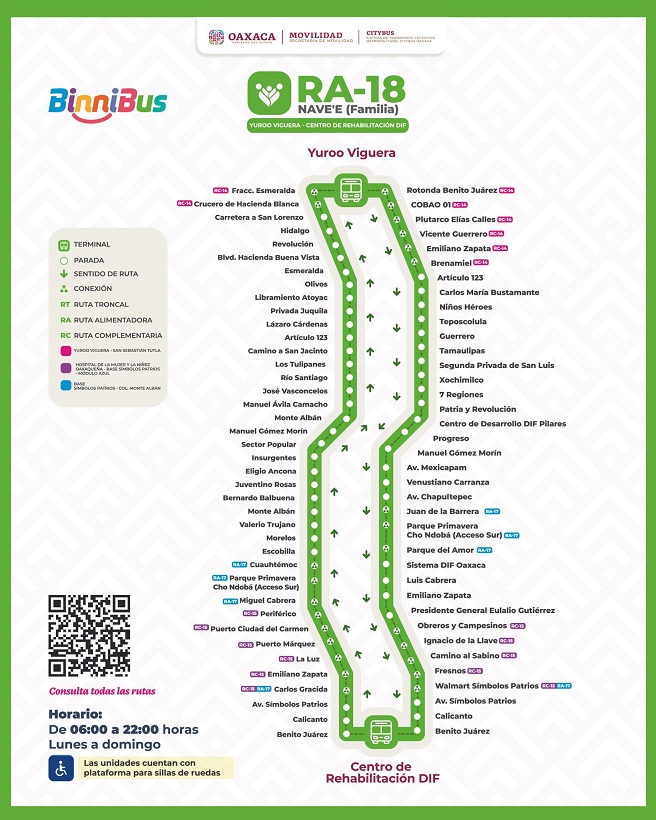 Igualmente, la ruta RA18 Nave’e, que significa familia en mixteca, tiene 81 paradas, en un recorrido que va de Yuroo Viguera al Centro de Rehabilitación del Sistema DIF Oaxaca.