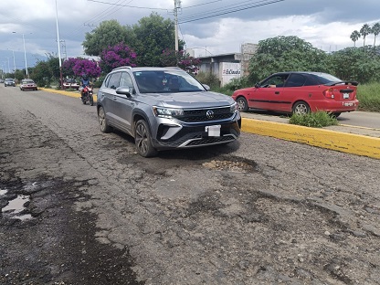 Oaxaca, Oaxaca, Martes 07 de Octubre, 2025 (Fuente: Jorge Pérez Velasco / Facebook: Clave Once).- Vecinos del municipio de Santa Cruz Xoxocotlán, cercano a la capital de Oaxaca, denuncian el grave deterioro de calles y avenidas llenas de baches, que ponen en riesgo a automovilistas, motociclistas y peatones.