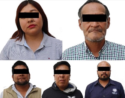 Ante el señalamiento directo, procedieron a la detención de quienes dijeron llamarse Óscar F. P. L., de 52 años de edad; Ricardo C. L., de 41 años; Josué S. L., de 38 años; Patricia J. R. G., de 29 años y Sergio G. M., de 31 años de edad.