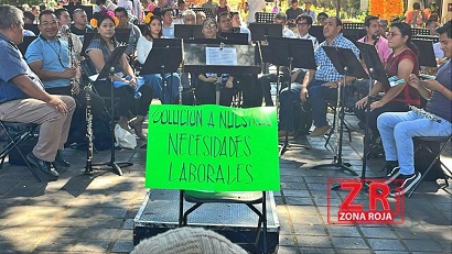 Con ese motivo, este domingo protestaron de manera pacífica durante el concierto que dieron al mediodía en el zócalo de la capital del estado.
