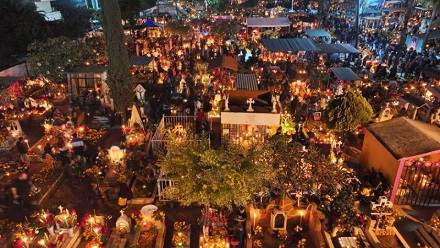 Santa Cruz Xoxocotlán, Oaxaca, Sábado 01 de Noviembre, 2025 (Fuente: Comunicado).- La Velada de los Fieles Difuntos 2025, una de las noches más esperadas por las familias de Santa Cruz Xoxocotlán y visitantes de todo el mundo, volvió a llenar los panteones San Sebastián Mártir, Mictlancíhuatl y Monte Albán de vida, color y sentimiento.