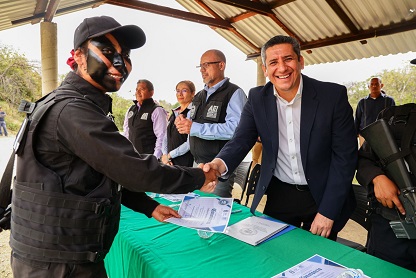 Al intervenir el coordinador de la Agencia Estatal de Investigaciones, Jaciel Vásquez Castro, reconoció la dedicación y capacidad de las y los nuevos elementos, quienes fueron formados tanto en aspectos jurídicos como en técnicas tácticas especializadas, lo que representa un reto importante en materia de rendimiento, disciplina y resistencia.