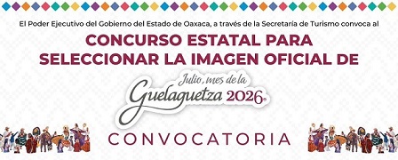 Oaxaca, Oaxaca, Lunes 17 de Noviembre, 2025 (Fuente: Comunicado).- El gobierno del estado, a través de la Secretaría de Turismo (SECTUR Oaxaca), emitió la convocatoria del Concurso Estatal para seleccionar la imagen oficial de Julio, Mes de la Guelaguetza 2026.