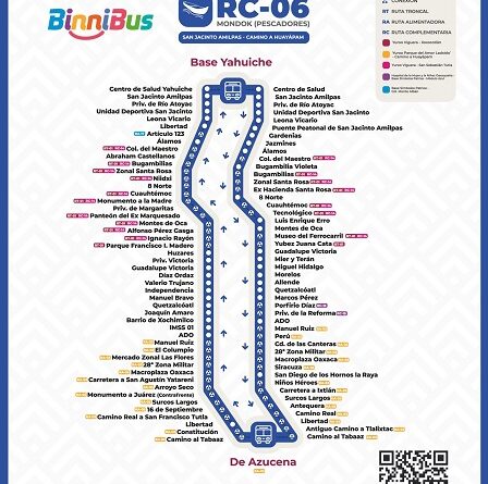 Oaxaca, Oaxaca, Viernes 21 de Noviembre, 2025 (Fuente: Comunicado).- El Sistema de Transporte Colectivo Metropolitano BinniBus informa que, a partir de este 20 de noviembre, entran en operación las ampliaciones de las rutas RC06 Mondok (pescadores) y RC15 Yu Ngta’ (barro negro), para mejorar la movilidad de la población.