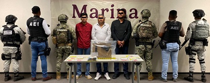 *La colaboración de la Secretaría de Marina y DEFENSA en los trabajos de inteligencia, clave para detención de tres objetivos prioritarios a los que aseguraron camionetas, 200 mil en efectivo y drogas