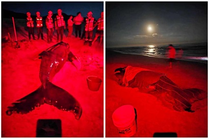 El hallazgo del mamífero varado se hizo del conocimiento de la Procuraduría Federal de Protección al Ambiente (PROFEPA), la Secretaría de Marina (Semar), de acuerdo con el protocolo, solicitando el apoyo de la Secretaría de Protección Civil de Santa María Huatulco, y los bomberos, el Comité de Fauna Silvestre de Huatulco, y el apoyo del MVZ. Salvador Neri Antonio.
