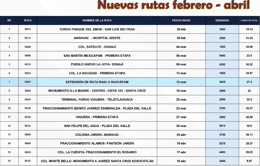 *Destacan las rutas Parque del Amor-Huayápam, Atzompa-Ejido Guadalupe Victoria y la colonia Monte Albán-Ciudad Administrativa se extenderá hasta Santa María El Tule