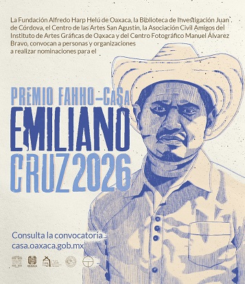 Oaxaca, Oaxaca, Jueves 26 de Febrero, 2026, (Fuente: Comunicado).- El Centro de las Artes de San Agustín (CASA), la Asociación Civil Amigos del Instituto de Artes Gráficas de Oaxaca (IAGO) y del Centro Fotográfico Manuel Álvarez Bravo (CFMAB), en colaboración con la Fundación Alfredo Harp Helú Oaxaca (FAHHO) y a través de la Biblioteca de Investigación Juan de Córdova, emiten por séptimo año consecutivo la convocatoria para el Premio FAHHO-CASA Emiliano Cruz, cuyo objetivo es reconocer a personas o colectivos que realicen una labor extraordinaria y creativa por la promoción de su lengua materna por iniciativa propia.