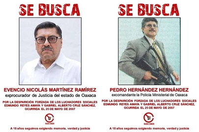 Oaxaca, Oaxaca, Sábado 07 de Marzo, 2026, (Fuente: Agencia Zona Roja).- A más de seis años de que se emitiera la orden de aprehensión en contra de Evencio Nicolás Martínez por su probable responsabilidad en la desaparición forzada de Gabriel Alberto Cruz Sánchez y Edmundo Reyes Amaya, cometida el 25 de mayo del 2007, este continúa prófugo de la justicia y su representación legal busca a toda costa que permanezca impune ante este crimen de estado.