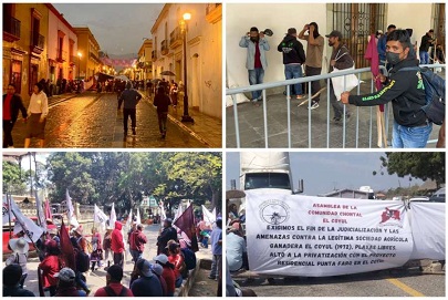 Mientras tanto, con una marcha masiva desde el crucero del aeropuerto internacional hasta el Palacio de Gobierno de la ciudad de Oaxaca, diversas organizaciones sociales adheridas al Frente de Organizaciones Oaxaqueñas (FORO) se manifestaron para exigir atención del gobierno estatal a sus demandas.