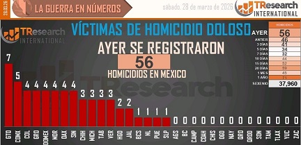 En la última jornada, el país contabilizó 56 homicidios en el país, 10 más que el día previo. El promedio del sexenio se mantiene en 70 víctimas por día.