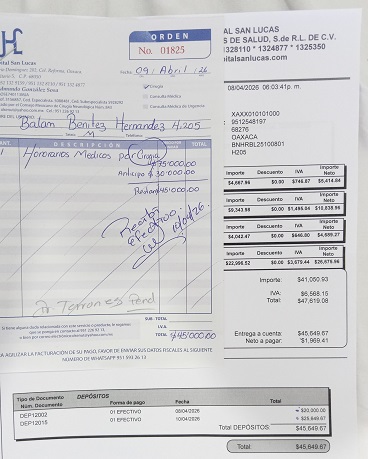 Oaxaca, Oaxaca, Martes 14 de Abril, 2026, (Fuente: Comunicado).- Un niño de Oaxaca sufrió un accidente que puso su vida en riesgo. Su nombre es Balam Benítez Hernández, de apenas 6 meses.