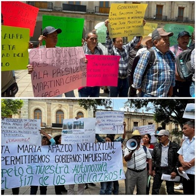 Con una protesta frente al Palacio de Gobierno, en la ciudad de Oaxaca, un grupo de ciudadanos de Apazco denunció la injerencia de personas externas a la comunidad, específicamente el ex diputado Jesús López Rodríguez, y consideró que en la resolución de la Sala Xalapa (a favor del edil Eduardo García Santiago) pesaron más “los acuerdos políticos y económicos para mantener el control del erario municipal”.