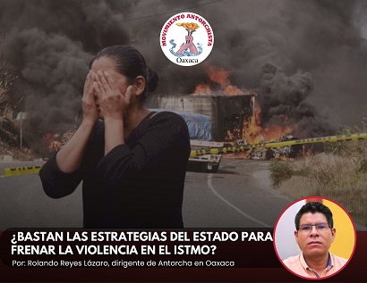 El Istmo de Oaxaca es rico en recursos naturales y, sobre su espacio, desde hace muchos años se ha exigido una vía que comunique al Pacífico con el Golfo, pero no en beneficio de los habitantes; por eso no veo una solución pronta al problema de la inseguridad en esa zona. A los vecinos del norte les interesa tener al pueblo de México atemorizado para beneficiarse de nuestros recursos y, ante un enemigo tan poderoso, la izquierda mexicana y oaxaqueña no han alcanzado a ver que solo nos queda una salida: la organización del pueblo; un pueblo al que, en los intentos de organización, se le atropellan sus derechos, se le engaña y se le reprime si se manifiesta. Se equivocan los políticos: se están confrontando con el pueblo que les dio el voto y se les hace tarde para rectificar.