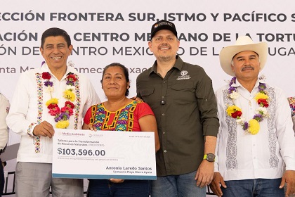 Santa María Tonameca, Oaxaca, Sábado 25 de Abril, 2026, (Fuente: Comunicado).- El gobernador Salomón Jara Cruz encabezó la entrega de 26 millones de pesos para el fortalecimiento y operación de la primera etapa de rehabilitación del Centro Mexicano de la Tortuga en Mazunte, Santa María Tonameca, acción que brinda la continuidad de la preservación marina.