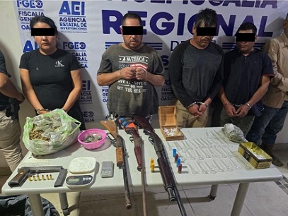 En tanto, como resultado de labores de investigación y en cumplimiento de dos órdenes de cateo ejecutadas en distintos inmuebles ubicados en el municipio de San Juan Bautista Cuicatlán, la Fiscalía General del Estado de Oaxaca (FGEO) logró la detención de tres personas del sexo masculino, así como el aseguramiento de diversas dosis de droga, un arma de fuego y otros indicios relacionados con la probable comisión de delitos.