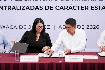 Oaxaca, Oaxaca, Miércoles 29 de Abril, 2026, (Fuente: Comunicado).- El gobierno del estado y el Sindicato de Trabajadores de los Poderes del Estado e Instituciones Descentralizadas de Carácter Estatal de Oaxaca (STPEIDCEO) firmaron este 27 de abril el Convenio del Pliego Petitorio 2026.