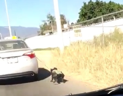 El hecho habría sido grabado este lunes, sobre el boulevard Guadalupe Hinojosa, del municipio de Santa Cruz Xoxocotlán; una automovilista graba cuando el perro hace esfuerzos para no caer, mientras intenta ir a la velocidad del coche.