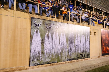 La exposición está integrada por oleos en los cuales se hace alusión gráfica a la fuerza ancestral de los oaxaqueños y mediante un acto en el medio tiempo quedo abierta para el disfrute de quienes asistan a presenciar los partidos de Alebrijes de Oaxaca.
