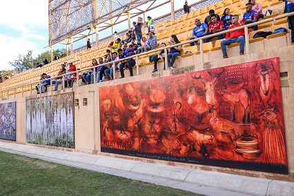 Acompañados por directivos del equipo de Cruz Azul de Primera División, empresarios oaxaqueños, así como la secretaria de Cultura y Arte de Oaxaca, Adriana Aguilar Escobar, se inauguró el espacio en el cual se busca vincular el arte con el deporte resaltando la riqueza cultural de la entidad oaxaqueña.