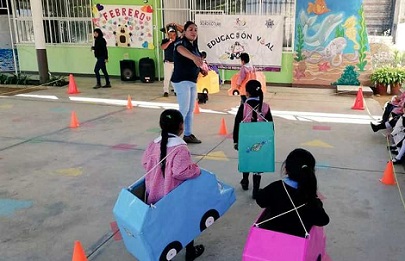 Informaron que se llevan a cabo pláticas de seguridad con alumnos de preescolares y primarias, donde se realizan actividades didácticas, cursos de prevención, simulacros de juegos de tránsito y talleres con el propósito de generar desde temprana edad la cultura vial.
