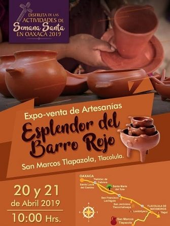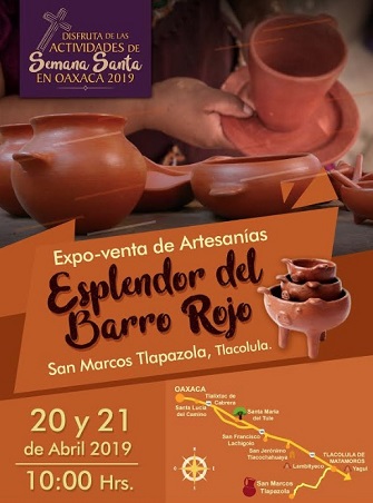 Oaxaca, Oaxaca, Lunes 22 de Abril, 2019 (Fuente: Comunicado).- La comunidad de San Marcos Tlapazola, perteneciente al municipio de Tlacolula de Matamoros, realizó los días 20 y 21 de abril del presente año, la expo venta de artesanías Esplendor del Barro Rojo.
