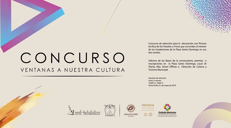 Oaxaca, Oaxaca, Domingo 12 de Mayo, 2019 (Fuente: Comunicado).- Para promover e impulsar la expresión cultural de las y los habitantes de Oaxaca de Juárez, el Ayuntamiento a través de la Dirección de Cultura y Turismo en coordinación con la administración de la Plaza Santo Domingo, convocan a toda la ciudadanía a participar en el concurso de pintura “Ventanas a nuestra cultura”.