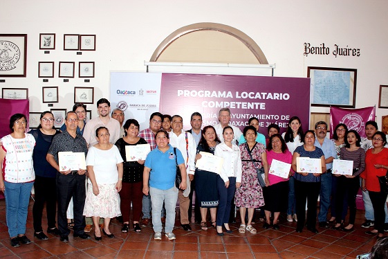 Oaxaca, Oaxaca, Sábado 08 de Junio, 2019 (Fuente: Comunicado).- La capacitación en una ciudad eminentemente turística es vital para brindar un servicio de calidad a la ciudadanía y a las y los visitantes, mencionó el regidor de Bienes, Panteones y Servicios Municipales y de Mercados y Comercio en Vía Pública, Luis Arturo Ávalos Díaz Covarrubias, durante la entrega del distintivo “Locatario Competente” a 81 locatarios de mercados tradicionales de la capital.