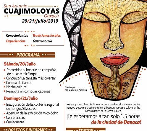 Oaxaca, Oaxaca, Viernes 12 de Julio, 2019 (Fuente: Comunicado).- La Secretaría de Turismo del Gobierno del Estado de Oaxaca (SECTUR Oaxaca), invita a los visitantes y oaxaqueños visitar la comunidad de San Antonio Cuajimoloyas para ser parte de la XIX Feria Regional de Hongos Silvestres y otros productos no maderables, que se llevará a cabo los días 20 y 21 de julio.