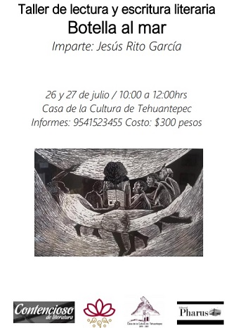 *El 26 y 27 de julio, el poeta y editor Jesús Rito Impartirá el Taller de Lectura y escritura literaria “Botella al mar” y la charla – conversatorio: “La importancia del libro en la sociedad”, en la Casa de la cultura de Tehuantepec, con la ayuda del Contencioso de literatura y Pharus
