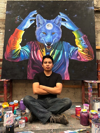 Es un artista autodidacta que nació en 1993 en San Cristóbal Suchixtlahuaca, Oaxaca; lleva 7 años dedicándose me manera profesional a la creación artística.
