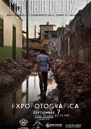 La exposición fotográfica «Memoria de Luz», aniversario del terremoto del Istmo de Oaxaca se llevará a cabo el 7 de septiembre a las 20 horas en la Casa Tilcoatle, en Huatulco, Oaxaca.