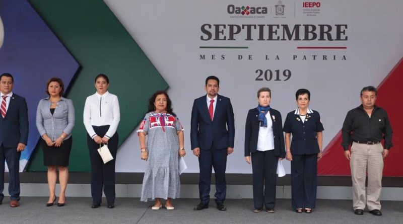 Oaxaca, Oaxaca, Viernes 13 de Septiembre, 2019 (Fuente: Comunicado).- “Convoco a las y los oaxaqueños a que hagamos de la unión nuestra fuerza, los llamo a que aportemos nuestro compromiso y voluntades para seguir luchando por una patria más justa”, expresó el coordinador de Atención Ciudadana y Vinculación Social de la Jefatura de la Gubernatura, Mario Omar Acevedo Ramírez, al encabezar la ceremonia de arrío de la Bandera Nacional, como parte del programa cívico “Septiembre, Mes de la Patria”.